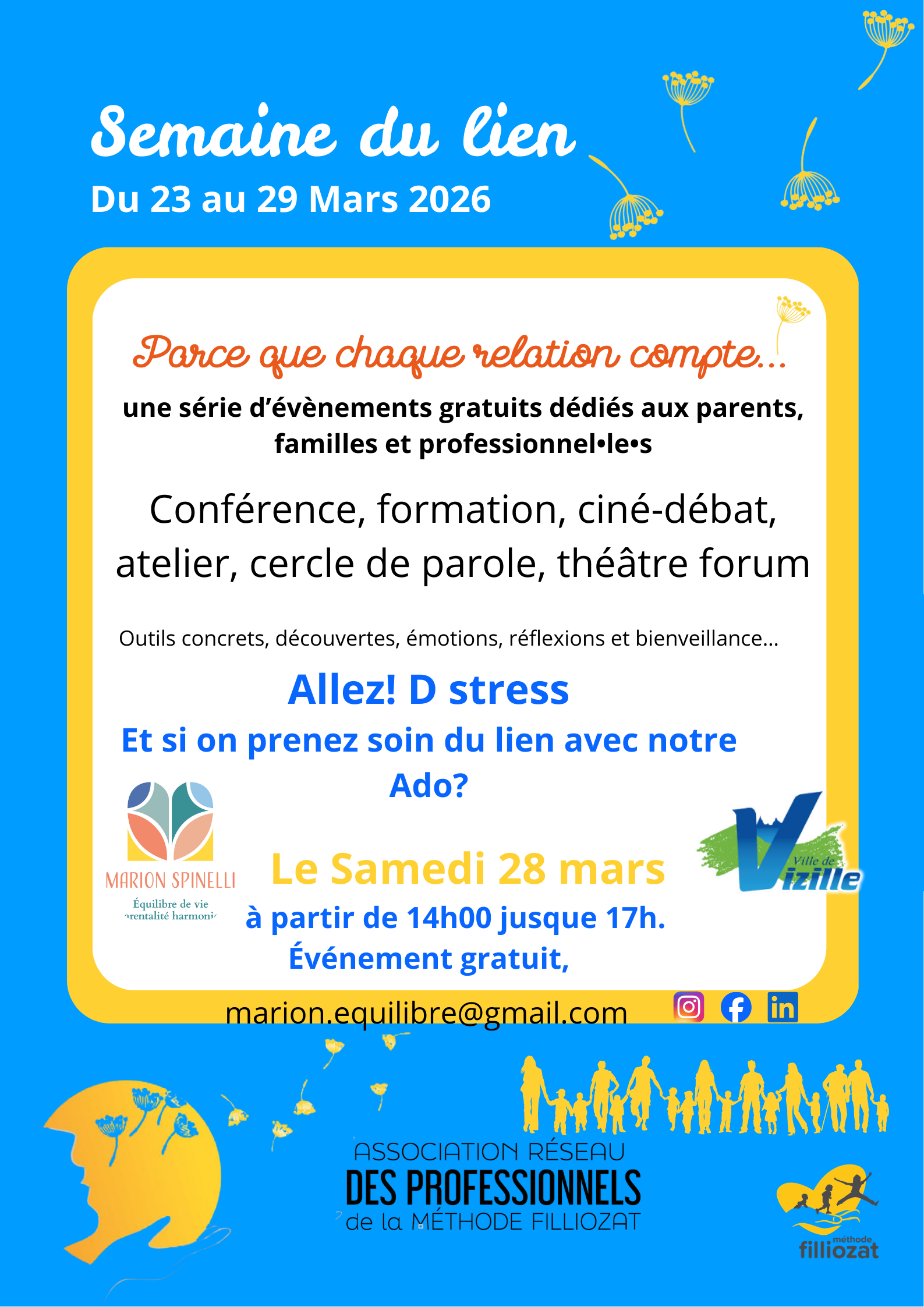 On ne va pas se mentir : la période de l’adolescence est parfois un vrai grand huit émotionnel ! Pour clore la Semaine du Lien en beauté, je vous invite à une rencontre inédite à Vizille, co-organisée avec les services jeunesse et les associations locales.